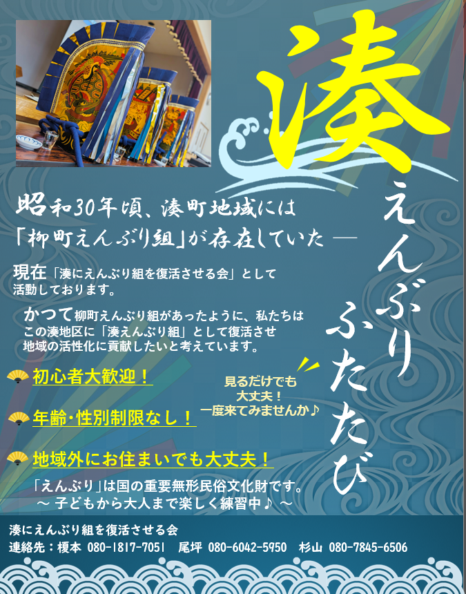この度、元々同地域にあった「柳町えんぶり組」を「湊えんぶり」として復活させ、先々「一斉摺り」参加に向けて活動していきたいと考えております。
